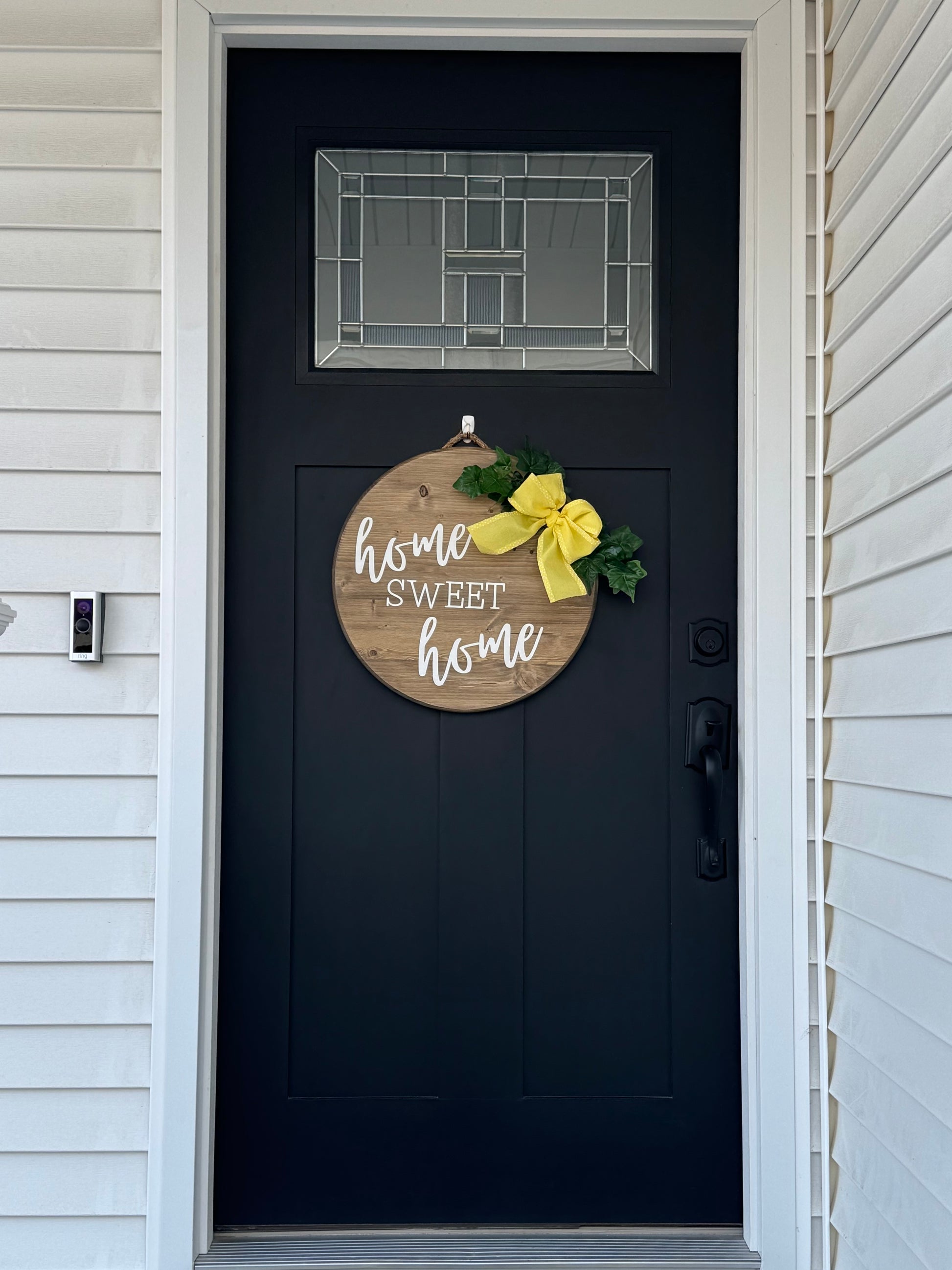 Home Sweet Home Wood Sign With Yellow Bow and Greenery