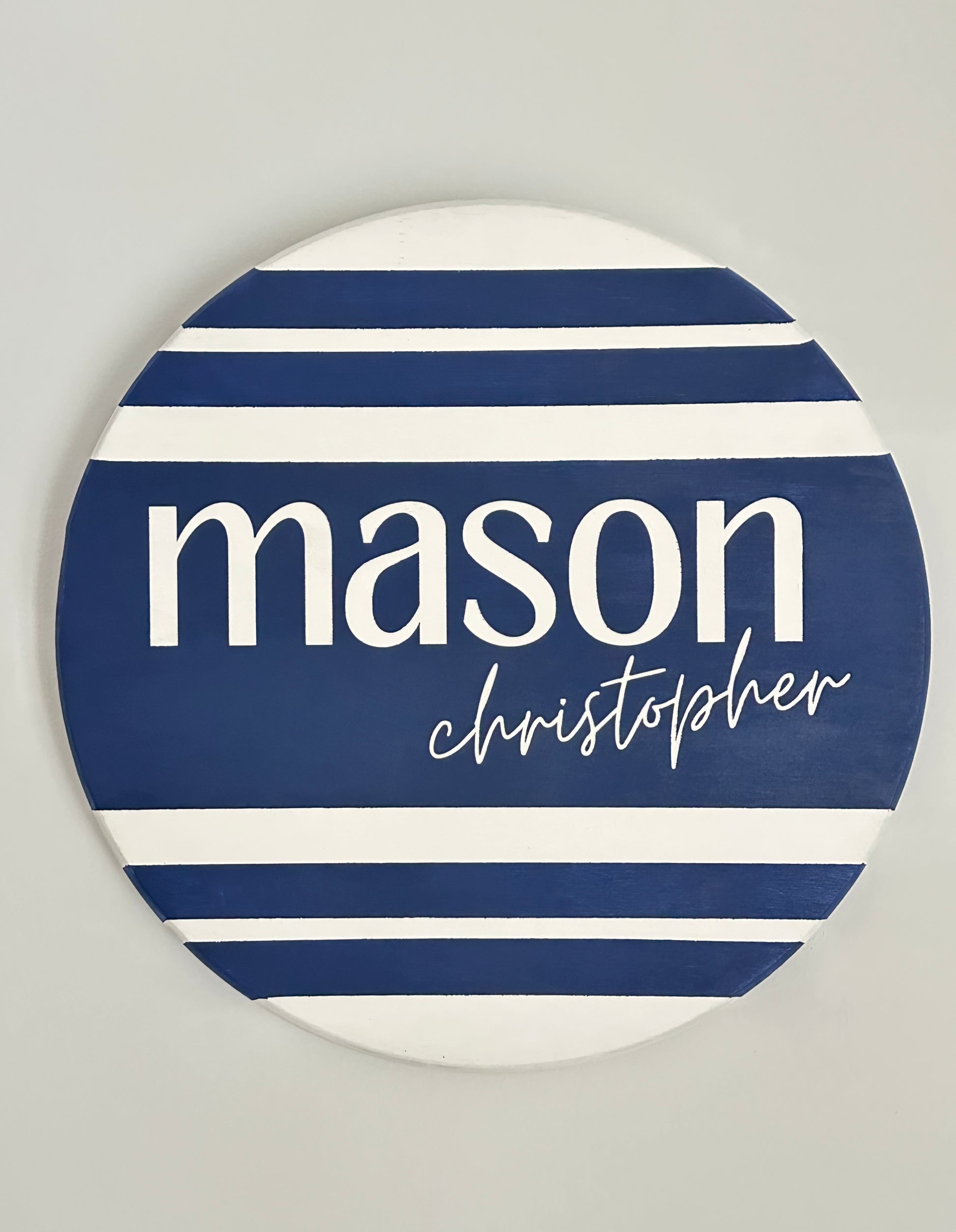 Personalized boy room navy blue wood sign. Completely hand painted. 15" and 18" options available. Sealed for indoor durability.